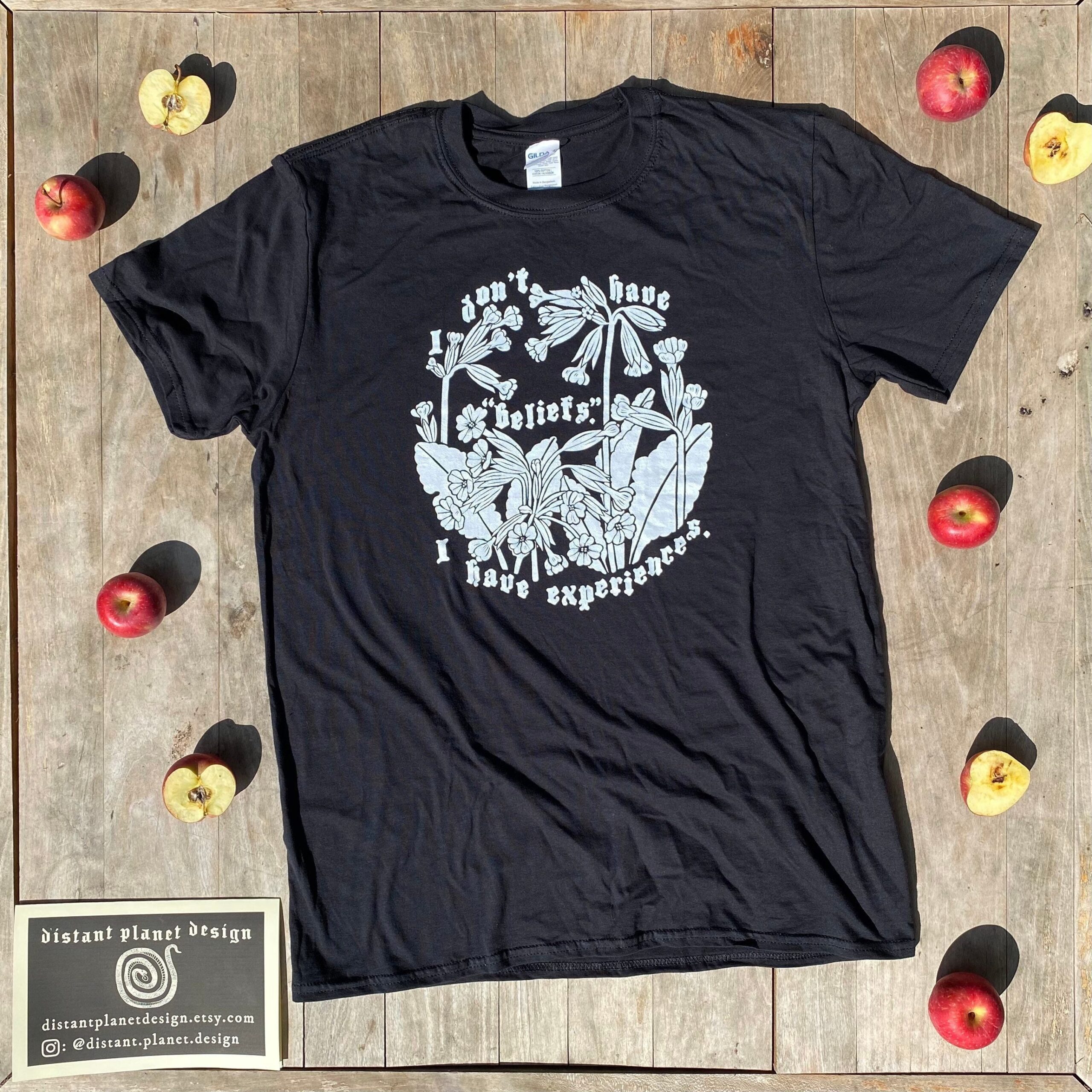 Original illustration by Distant Planet Design Don’t see the size you need? Want it on a sweater or tank top? Don’t hesitate to message mewe can make something happen together! == You’ve now found the staple t-shirt of your wardrobe. It’s made of a thicker, heavier cotton, but it’s still soft & comfy. & the double stitching on the neckline & sleeves add more durability to what is sure to be a favorite! 100% ring-spun cotton Sport Grey is 90% ring-spun cotton, 10% polyester Dark Heather is 65% polyester, 35% cotton 4.5 oz/y² (153 g/m²) Pre-shrunk Shoulder-to-shoulder taping Quarter-turned to avoid crease down the center Blank product sourced from Bangladesh, Honduras, Haiti, Mexico, or Nicaragua == ABOUT US – Distant Planet Design offers canvas patches & originally designed shirts with invocation in mind. Beliefs Vs. Experiences Tshirt – Spiritual Sayings, Cowslip Plant, Botanical Drawing Unisex Short Sleeve Graphic T Shirt