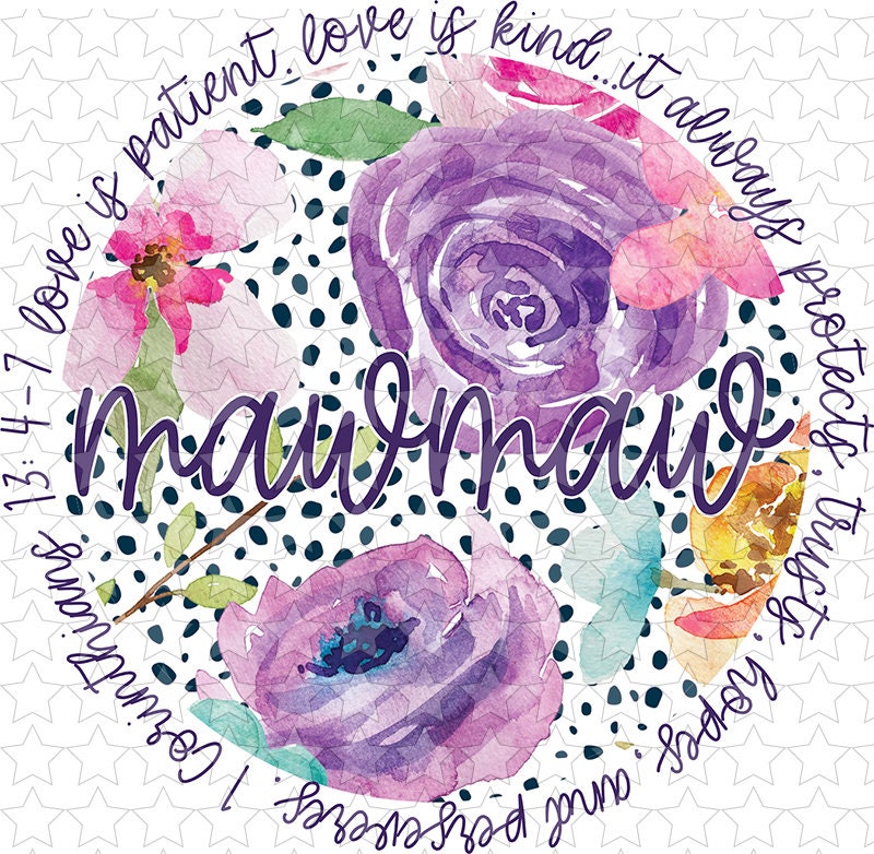 1126230 Mawmaw 1 Corinthians 13 DTF transfers can be pressed on any type & color of material. MUST HAVE A HEAT PRESS TO APPLY! You cannot use easy press or iron, you need heavy pressure. Soft hand similar to high heat screen prints. No weeding or transfer sheet needed! How to press on your shirt: 1) Pre-press your shirt to remove any moisture 2) Apply transfer & cover with parchment paper or Teflon sheet. Press at 315o for 12 seconds, heavy pressure let cool 3) once cooled pull from one 4) not required but you can – Cover with parchment paper/Teflon sheet & press again for 10 sec. Sizes listed are the largest dimension Colors vary from monitor to monitor so please be mindful that the colors you see might be slightly different Dtf Transfer 1126230 Mawmaw 1 Corinthians 13