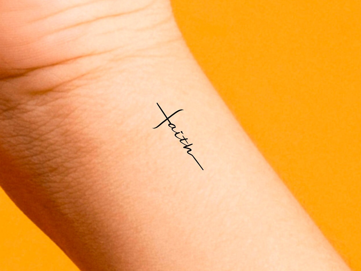 Little Faith Cross Temporary Tattoo Size: The size of this Temporary Tattoo is approximately 1 inch in length. If you would like this design in a smaller or larger size that isn’t listed, please message me on Etsy & I would be more than happy to accommodate you. Directions: 1. Cut excess paper around tattoo with scissors to eliminate any unnecessary adhesive on your skin after applying. 2. Peel away & discard the clear plastic layer. 3. Apply the tattoo image side to your skin & cover with a damp cloth for 20 seconds. 4. Carefully peel back paper off of your skin & allow the tattoo to dry for at least 10 seconds. Do not touch it. 5. After allowing for dry time, your tattoo should be smooth to the touch & last between 1-3 days. Temporary Tattoo Longevity: Once you apply the tattoo & it is fully dry, avoid anything rubbing on it & don’t get it wet. If the tattoo gets wet, it will dissolve the protective layer exposing the sticky adhesive underneath. The same thing can occur if you try to adjust the placement or peel the edge after the tattoo is already applied. If you avoid any rubbing & do not get the tattoo wet it can last between 1-3 days. Some customers have had the temporary tattoos last up to a week with listening to the proper aftercare instructions. Custom Tattoo Inquiry: Please message me on Etsy if you would like to customize or add to any of my listed designs OR if you have a custom tattoo design inquiry. If you add a “Note to Seller” to request customization with your order to a listed tattoo that does offer customization, I cannot guarantee your request will be granted. Pricing for custom tattoos vary. Bulk Orders: Please message me on Etsy if you would like a bulk order of 20 or more quantity temporary tattoos! I do offer special bulk pricing. I also always run the sale of Buy 5 Get 20% Off your order. Shipping: I have a fast turnaround time that is typically set at 1-3 business days, I try to get orders out the next business day. With my free standard shipping your order would be sent out in a small envelope with USPS. This shipping method comes with PARTIAL tracking & is advertised at 2-6 business days although could sometimes take a few more business days additionally. With my FREE standard shipping I cannot guarantee a delivery date. If you order is time sensitive & you need it to arrive by a certain date, please keep that in mind when choosing your shipping option at checkout. I can only guarantee a delivery date with my UPGRADED shipping options at checkout. Thank you for your understanding. Little Faith Cross Temporary Tattoo