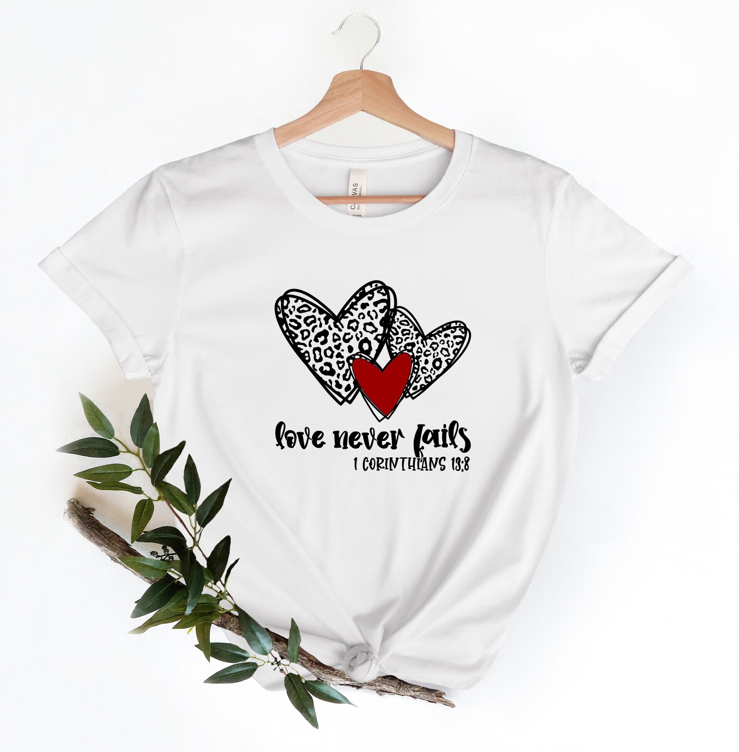 Love Never Fails Shirt | Shirt, Religious Valentines Day Be Mine Gift For Her, Leopard
